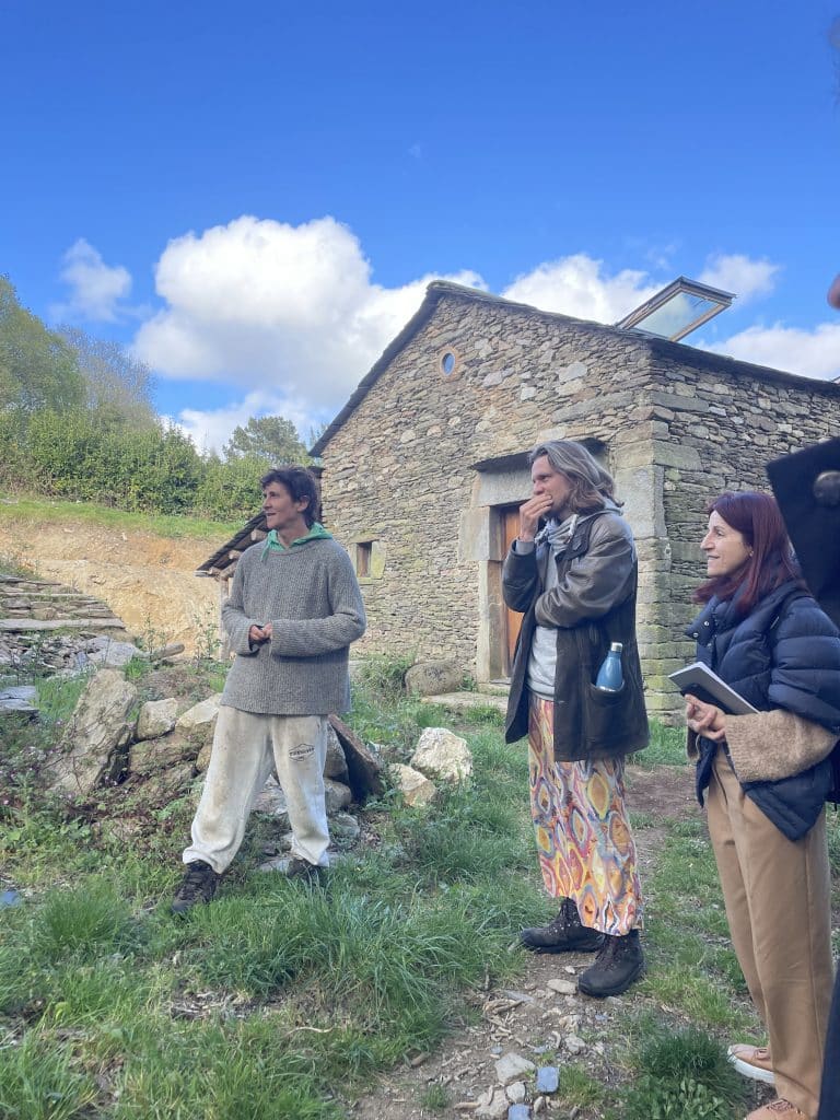 Al día siguiente, se llevó a cabo una intensa jornada de campo que comenzó en la panadería tradicional de Galdo. Allí, Loiso nos enseñó su increíble trabajo y nos trasladó sus retos y preocupaciones por la continuidad de la profesión. Tras probar las riquísimas magdalenas nos trasladamos a la Estación Agroecolóxica de Vieiro, donde Jaime y Ana nos presentaron su proyecto de bosque comestible. A través de su enorme pasión, pudimos emocionarnos al recorrer los terrenos llenos de biodiversidad y vida. Además, pudimos conocer su prototipo de cabañas residenciales enfocadas a albergar a personas con ganas de aprender y trabajar en el análisis de su modelo. La siguiente parada fue O Teatro das Cortes, un proyecto donde la tradición cultural y la innovación se mezclan creando un espacio único. Gracias al trabajo personal de Pepe Penabade, de Eduardo y de toda su gente pudimos descubrir una iniciativa enfocada a dinamizar el rural gallego desde la tradición y la cultura. Tras unas buenas pizzas y una agradable conversación pusimos rumbo a la aldea de O Cadaval, donde Manolo está desarrollando un proyecto lleno de amor y tradición. Gracias a la contextualización histórica de Bernardo de la que es su aldea natal, pudimos entender el enfoque seguido para la reconstrucción de las edificaciones y el desarrollo de una comunidad autosostenible. Además, Jonas nos transmitió los principales retos tecnológicos animándonos a contribuir de manera activa en la búsqueda de soluciones.